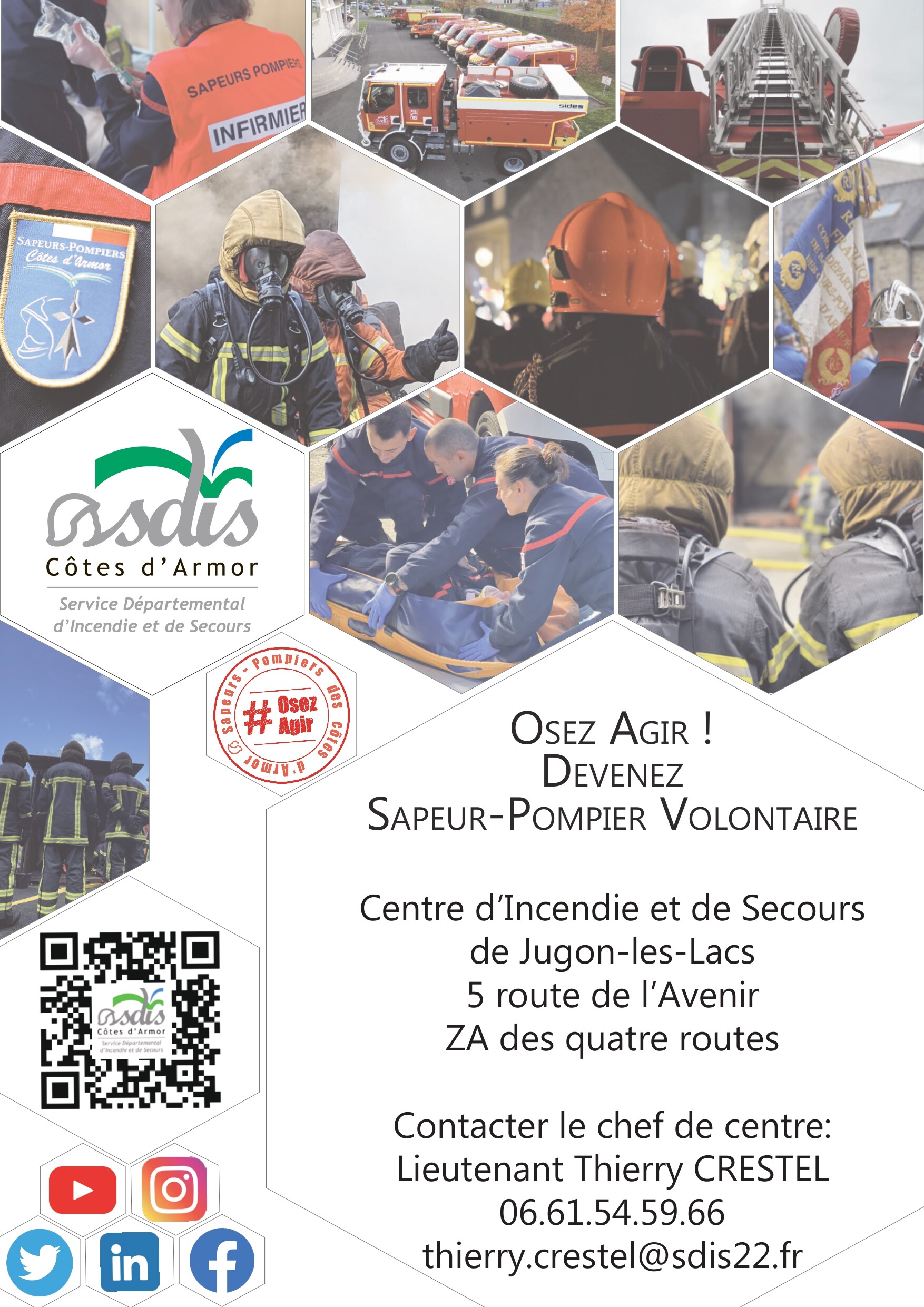 Osez agir pour devenir sapeur-pompier volontaire au CIS Jugon Les Lacs, contactez :