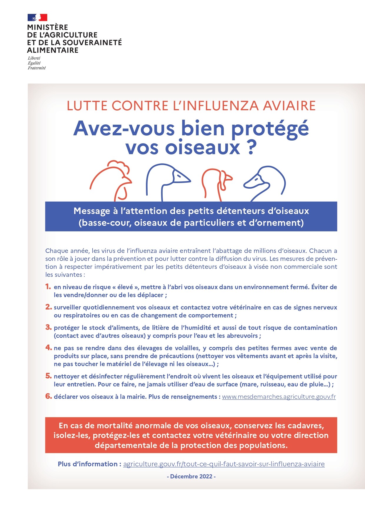 Influenza Aviaire Hautement Pathogène : passage en risque élevé