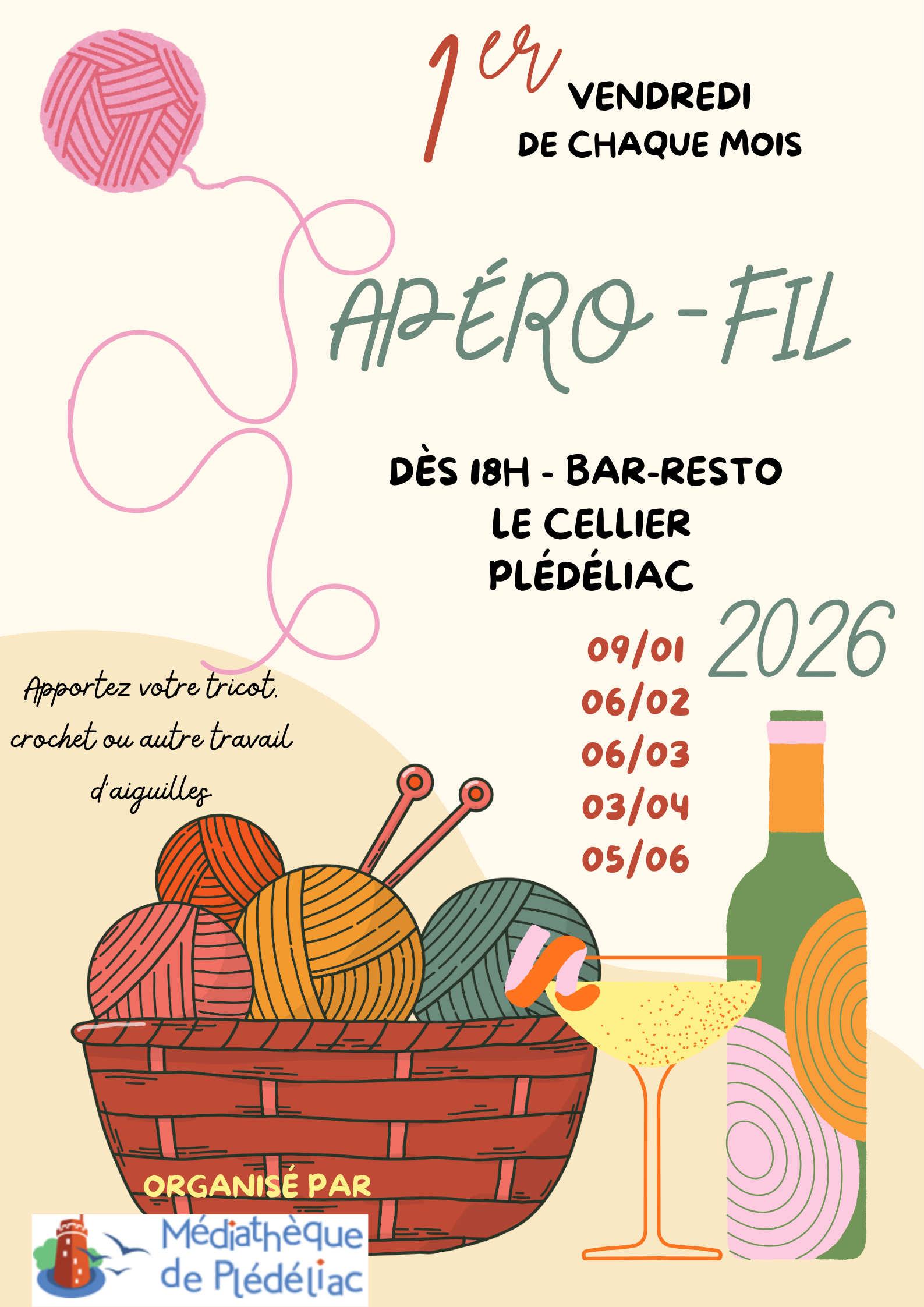 Le Tricot-thé en mode apéro en partenariat avec le bar-restaurant Le Cellier.