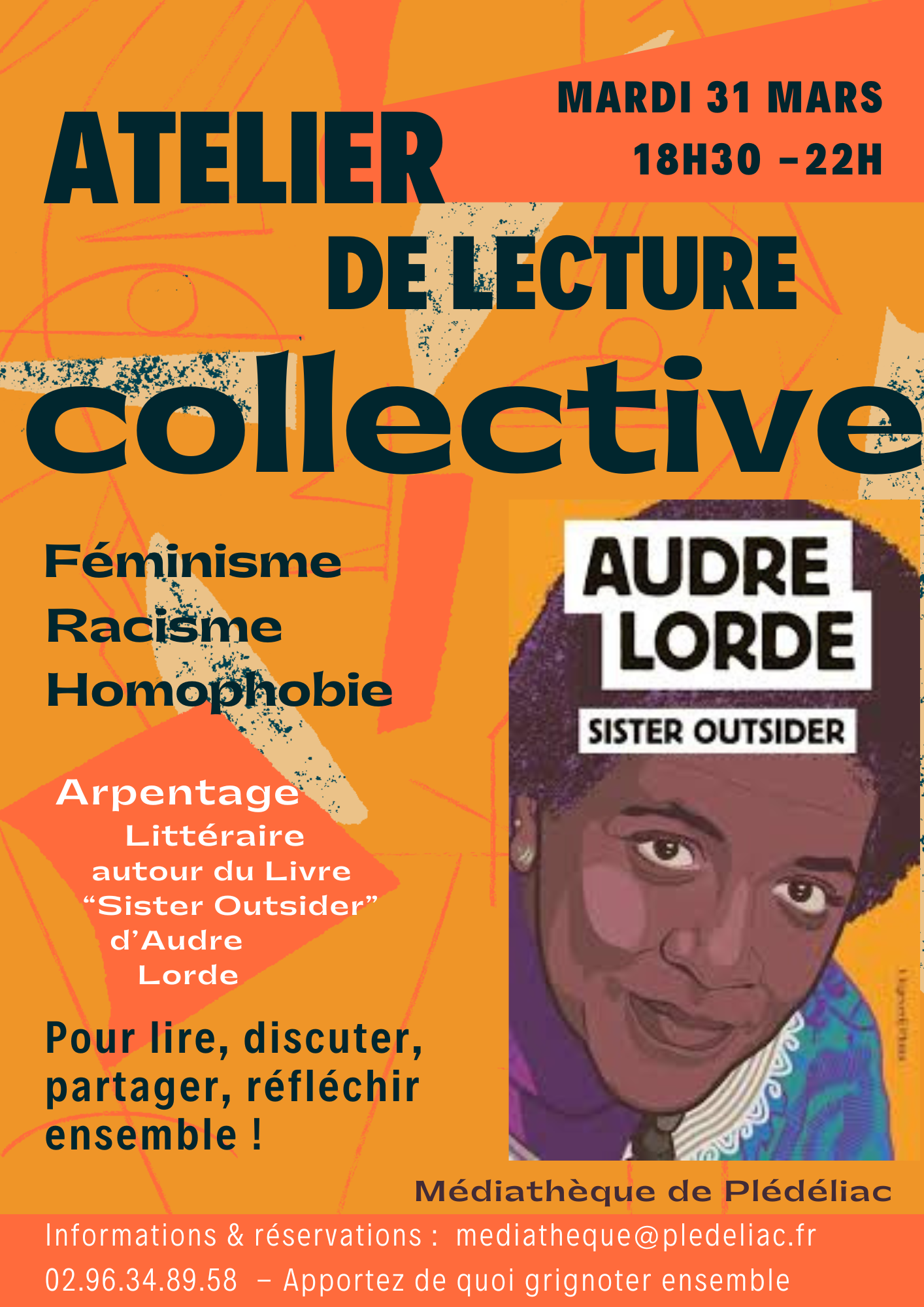 En partenariat avec LouvRageuse et la Bibliothèque des Côtes d’Armor, la Médiathèque propose un arpentage autour du livre “Sister Outsider” d'Audre Lorde. Féministe afro-étasunienne engagée, l'autrice aborde toutes les formes d'oppression dès les années 70/80 dans ce recueil de récits, discours, poèmes: racisme, sexisme, hétérosexisme, homophobie, sans concessions et une analyse très visionnaire.
