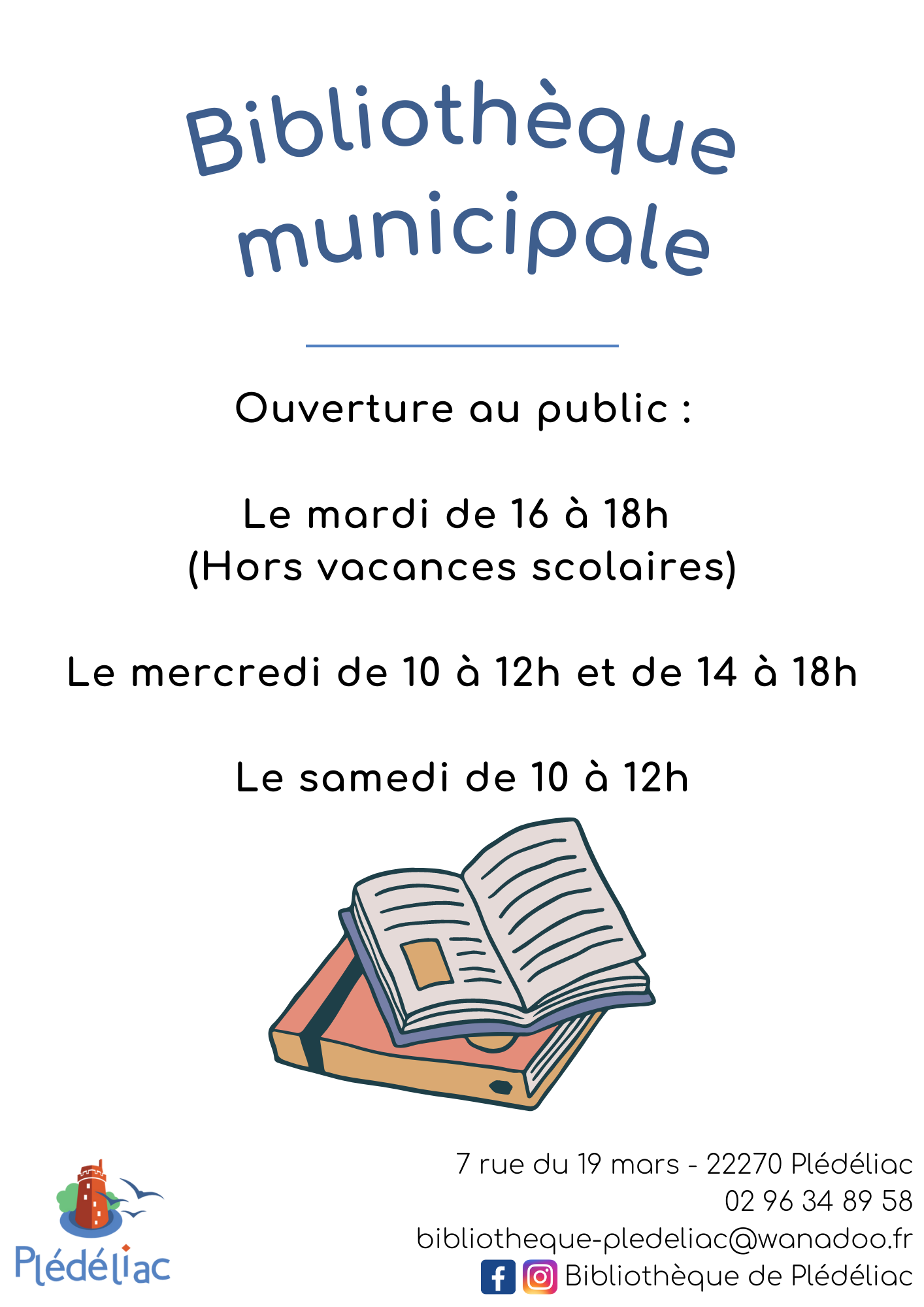 Les horaires d'ouverture de la médiathèques sont :Mardi 16h à 18h (fermé pendant les vacances scolaires)Mercredi 10h à 12h et 14h à 18hSamedi 10h à 12h